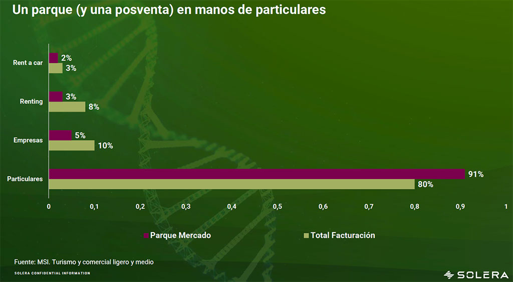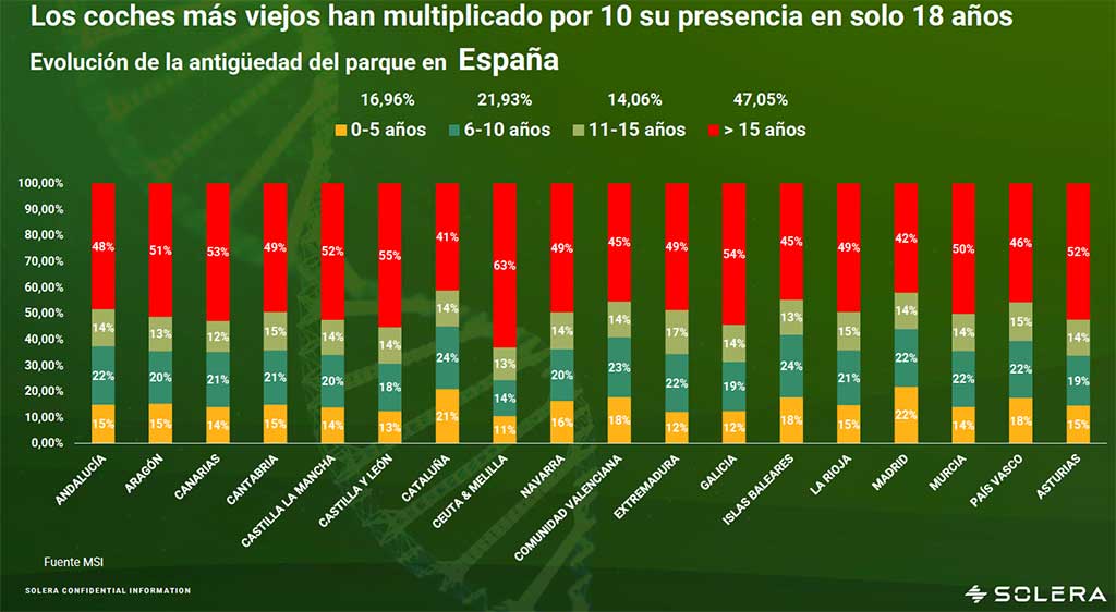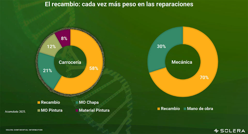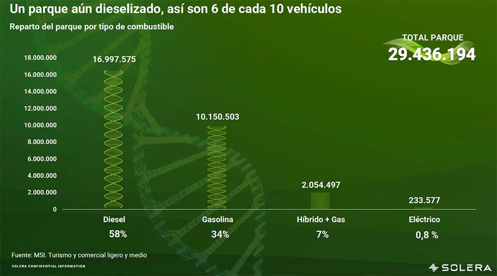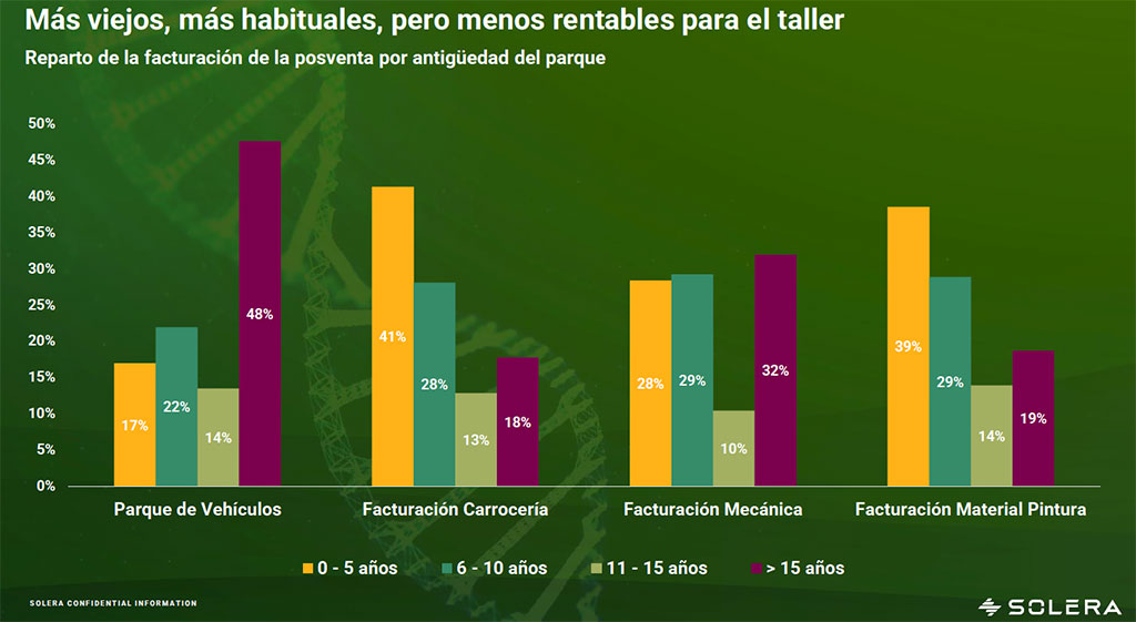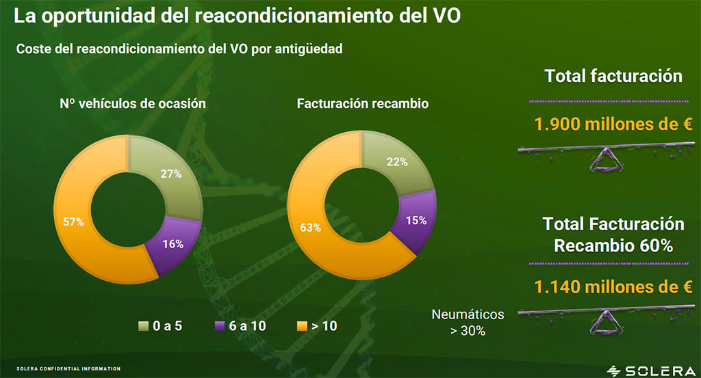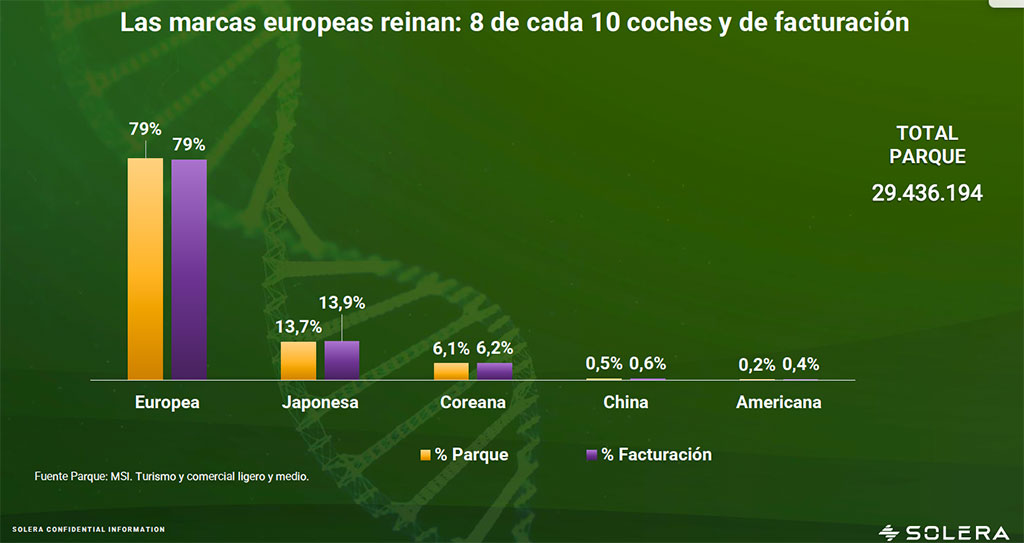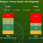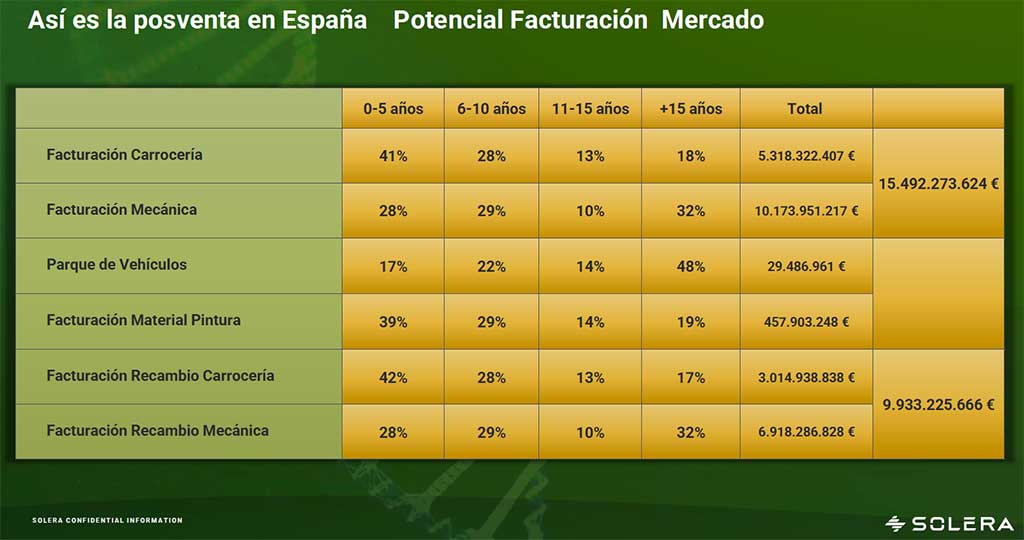 Acto seguido, José Luis Gata, Business Development Manager de Solera, hizo una detallada y enriquecedora radiografía sobre “El ADN del Parque y Posventa en España” -ver infografías adjuntas- y su incidencia en la demanda de neumáticos. Gata señaló que “el potencial del mercado podría superar las 31 millones de unidades en España” y destacó “el papel creciente de la electrificación como oportunidad de negocio para el mantenimiento preventivo”.