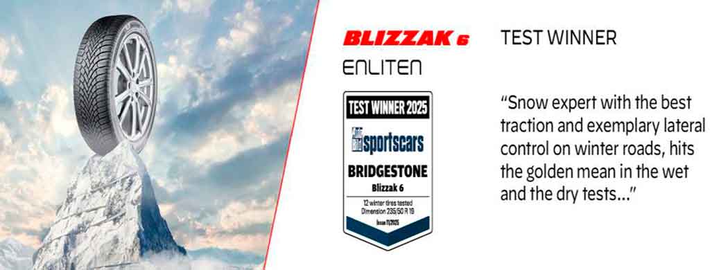 Bridgestone recuerda que “lanzado en 2024 y diseñado para todas las condiciones invernales de la carretera, el Bridgestone Blizzak 6, apto para vehículos eléctricos, es el sucesor del Bridgestone Blizzak LM005, ganador de 23 pruebas. Según las pruebas independientes de TÜV SÜD, el último neumático premium de invierno para turismo de Bridgestone es uno de los mejores en frenado y tracción sobre nieve, y ofrece la distancia de frenado más corta en carreteras mojadas. El neumático premium de invierno para turismo de Bridgestone también ofrece un 32% más de kilometraje que su predecesor”.