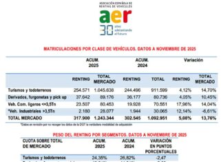 Las matriculaciones de renting en España siguen imparables y acumulan una subida del 5,08% hasta noviembre con 317.900 vehículos, lejos de los 302.543 vehículos matriculados hace un año, y una inversión de 7.369 millones...