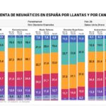 Subida con fuerza en volumen y más aún en el valor de las ventas hasta marzo, tanto en el mix de marca como, sobre todo, en el de producto. Sí, porque según los datos de Europool, las marcas premium aceleran un 7%, mientras las quality y budget ruedan en negativo. En el mix de producto, los neumáticos de llanta 17” suben más del 3%, con fuertes subidones del 14% en los de 18 pulgadas y casi del 17% en las cubiertas de 19 pulgadas y superiores; además, los neumáticos ‘all season’ o todotiempo vuelven a dispararse ¡más del 18%!