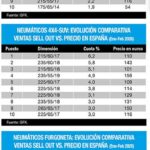 Desgranando los datos vía Europool a cierre del primer trimestre, la categoría de neumáticos para Turismo acumula un aumento del 3% con más de 3 millones de unidades, mientras que las ventas de cubiertas para 4×4-SUV siguen imparables al subir un 4% y las de Furgoneta rondan el 6%.