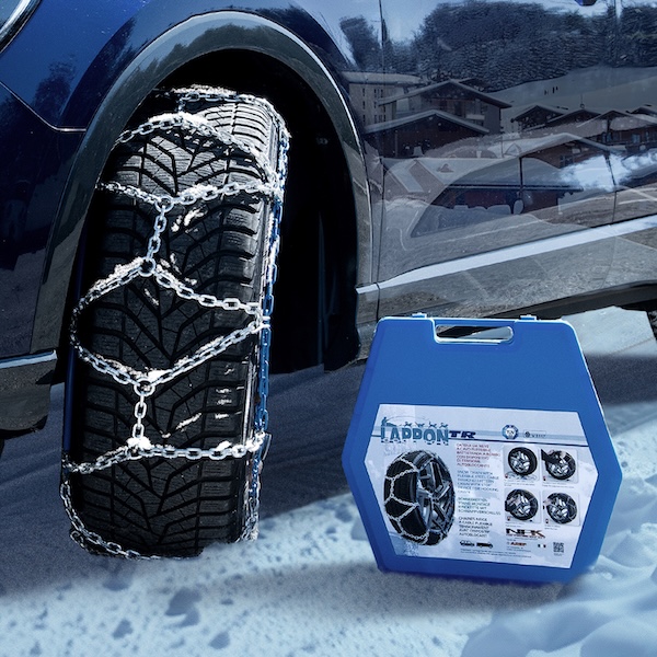Paralelamente, NPK también ofrece las cadenas metálicas para nieve NPK. Un kit de cable flexible con banda de rodadura en forma de rombos y sistema de tensión autoblocante, disponible en tres versiones (7 mm, 9 mm y TR para ruedas de 12″ a 21″).